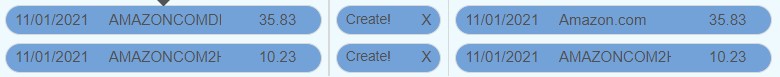 I have a couple of complaints to register regarding the import process. Actually, “complaint” is a bit harsh so let’s call them annoyances. For context, I download a QFX file from my bank and upload it to GB. I upload the file and GB does it’s thing and I see two Amazon charges that I have not entered in GB yet.
